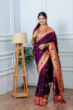 Fabric: Premium pure soft silk Paithani with lotus weaving and copper zari work.